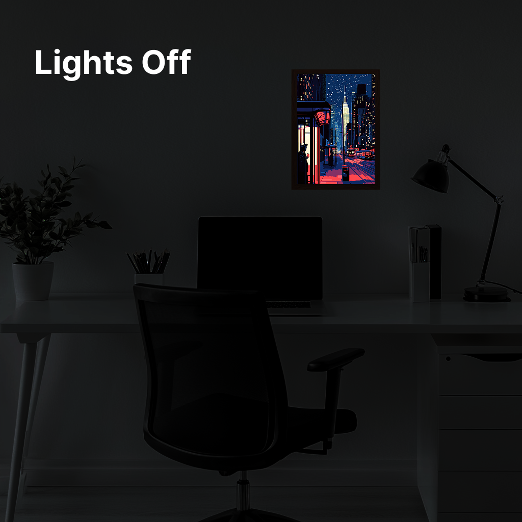 The glow on this frame is unreal. It completely changes my room vibe when the lights go out. Attached a pic below, the details pop so much more in person.