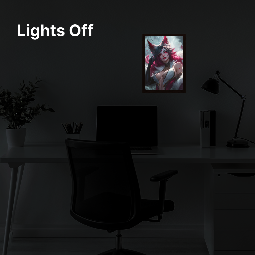 The glow on this frame is unreal. It completely changes my room vibe when the lights go out. Attached a pic below, the details pop so much more in person.