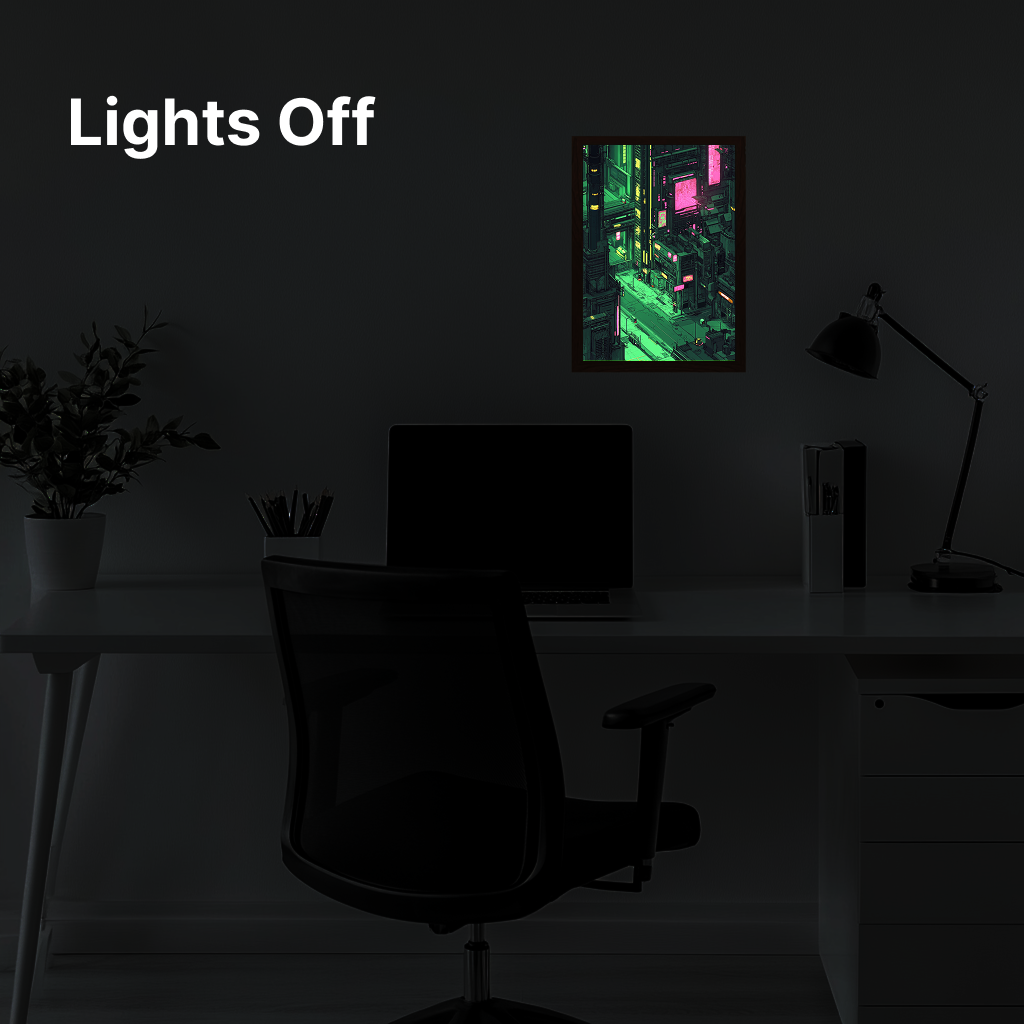 The glow on this frame is unreal. It completely changes my room vibe when the lights go out. Attached a pic below, the details pop so much more in person.