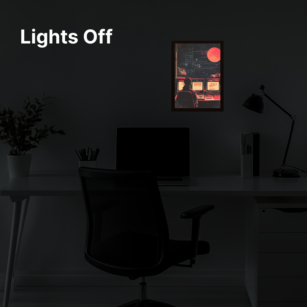 The glow on this frame is unreal. It completely changes my room vibe when the lights go out. Attached a pic below, the details pop so much more in person.