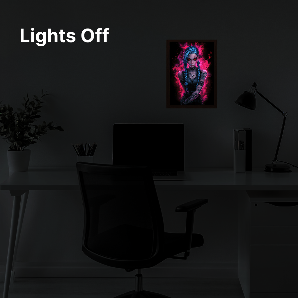 The glow on this frame is unreal. It completely changes my room vibe when the lights go out. Attached a pic below, the details pop so much more in person.
