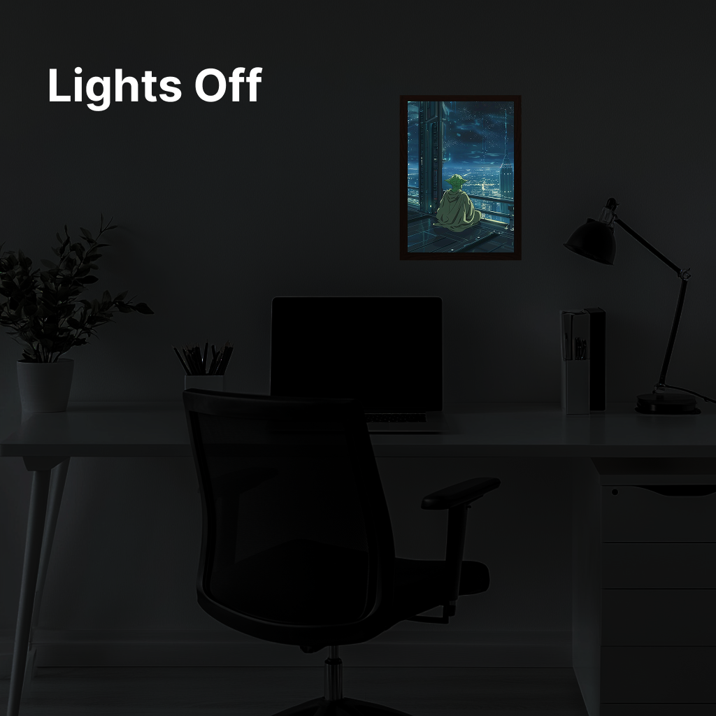 The glow on this frame is unreal. It completely changes my room vibe when the lights go out. Attached a pic below, the details pop so much more in person.