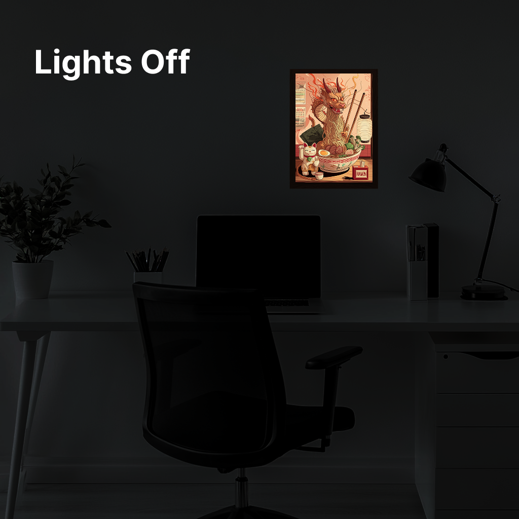 The glow on this frame is unreal. It completely changes my room vibe when the lights go out. Attached a pic below, the details pop so much more in person.