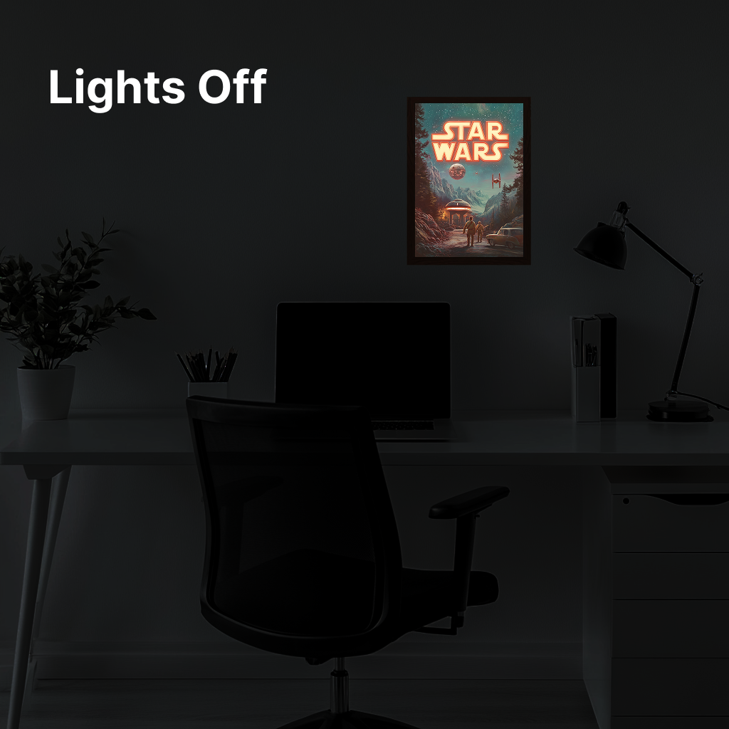 The glow on this frame is unreal. It completely changes my room vibe when the lights go out. Attached a pic below, the details pop so much more in person.